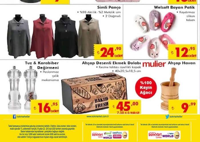- Welsoft Bayan Patik 12,95 TL- Tuz & Karabiber Değirmeni 16,95 TL- Mulier Ahşap Desenli Ekmek Dolabı 45 TL- Mulier Ahşap Havan 9,99 TL